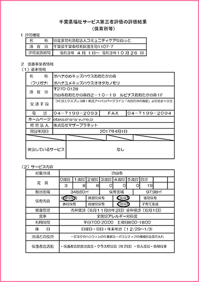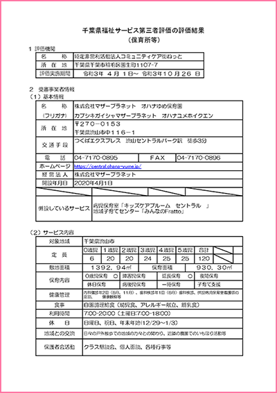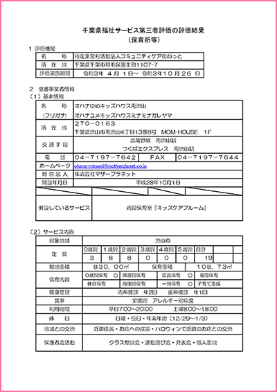 弊社運営の保育園 オハナゆめ保育園・オハナゆめキッズハウス南流山・オハナゆめキッズハウスおおたかの森は令和3年度 第三者評価を受審いたしました。
